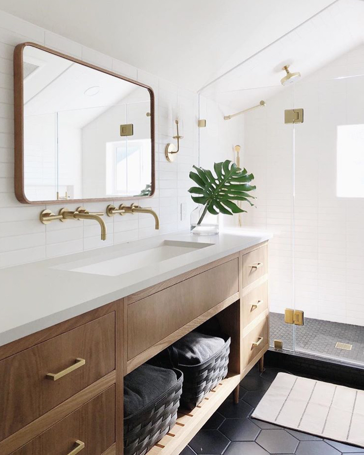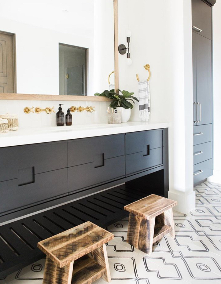 Today’s bathroom inspo images for our Modern Mountain rehab project in Park City. We’re going with Black|White|Wood and a pop of color in the powder room! Can’t wait to share the before and afters!!