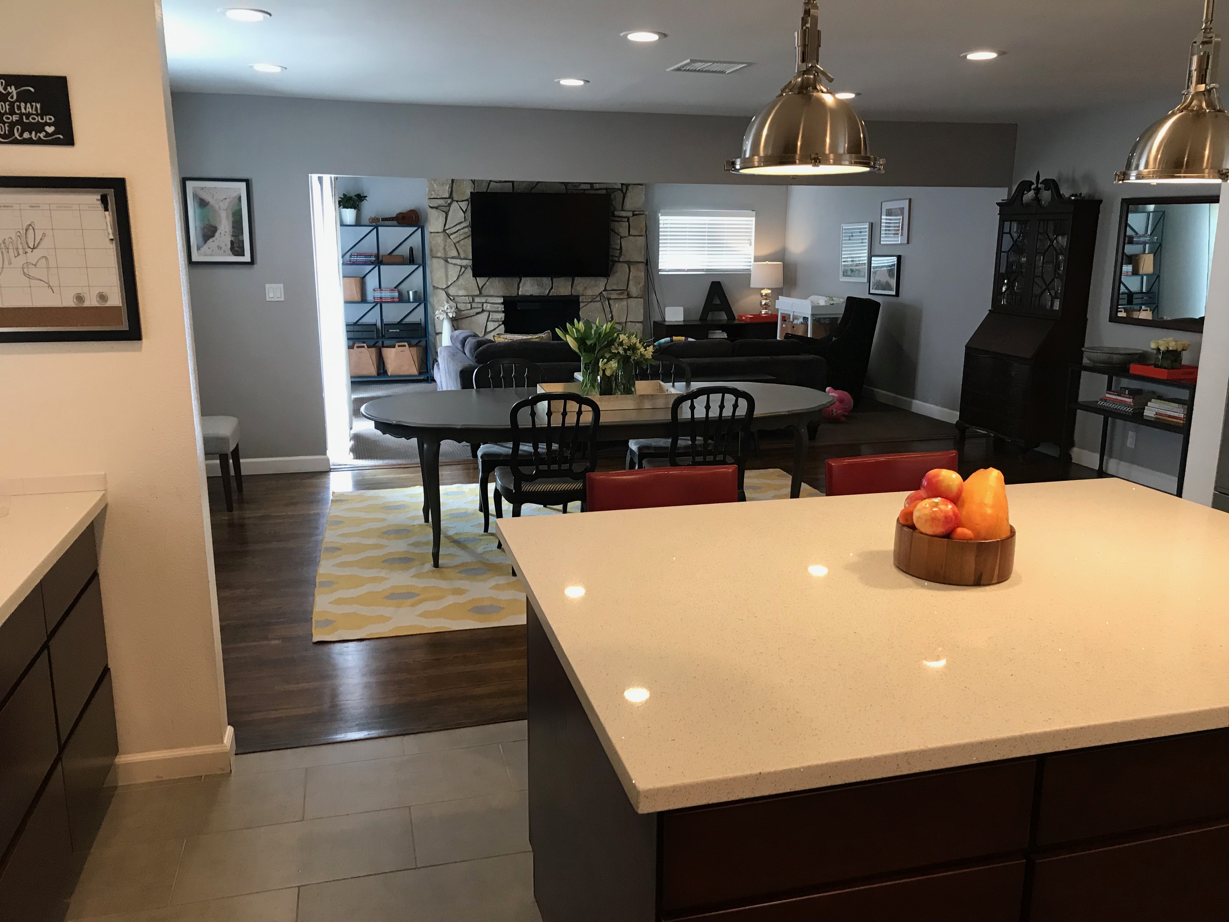 Hummingbird Homes completely remodeled this home, reworking the floor plan, adding an ensuite to create a true master bedroom/master bath, also enlarging the master closet. We created a powder room for guests, expanded the second bath to create a nice, large bathroom for the guest bedrooms. We created a “great room” delivering an open concept kitchen/dining/living room. Refinished the hardwoods throughout, added new carpet in the master bedroom, all new finishes, fixtures, paint throughout. We completely remodeled the backyard and front yard, adding zeroscape which requires very little watering.