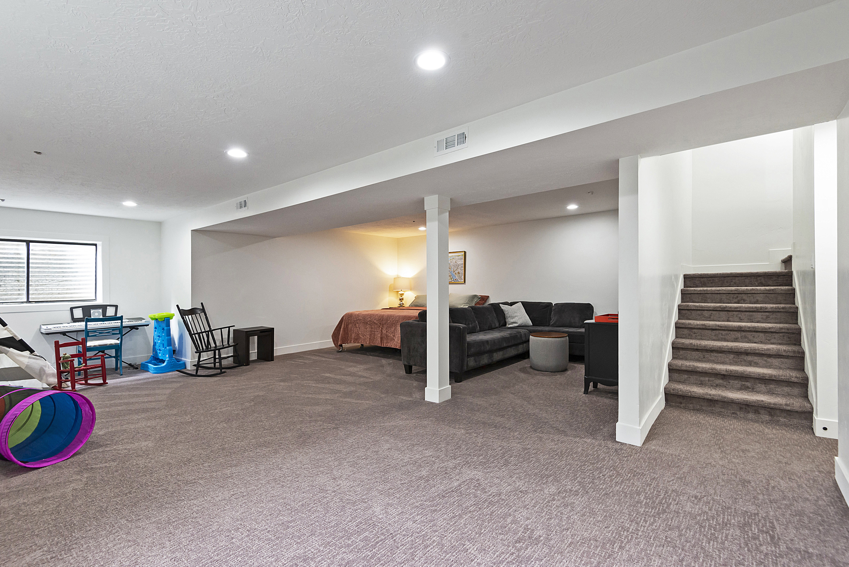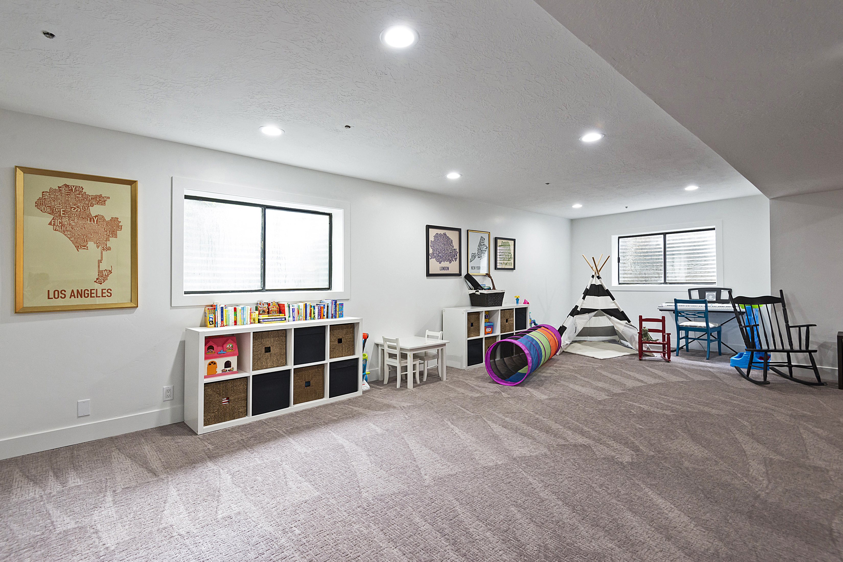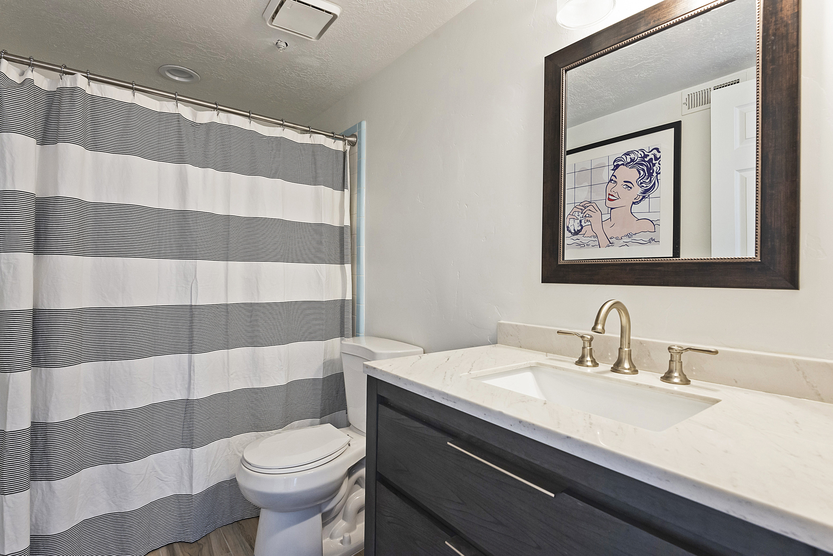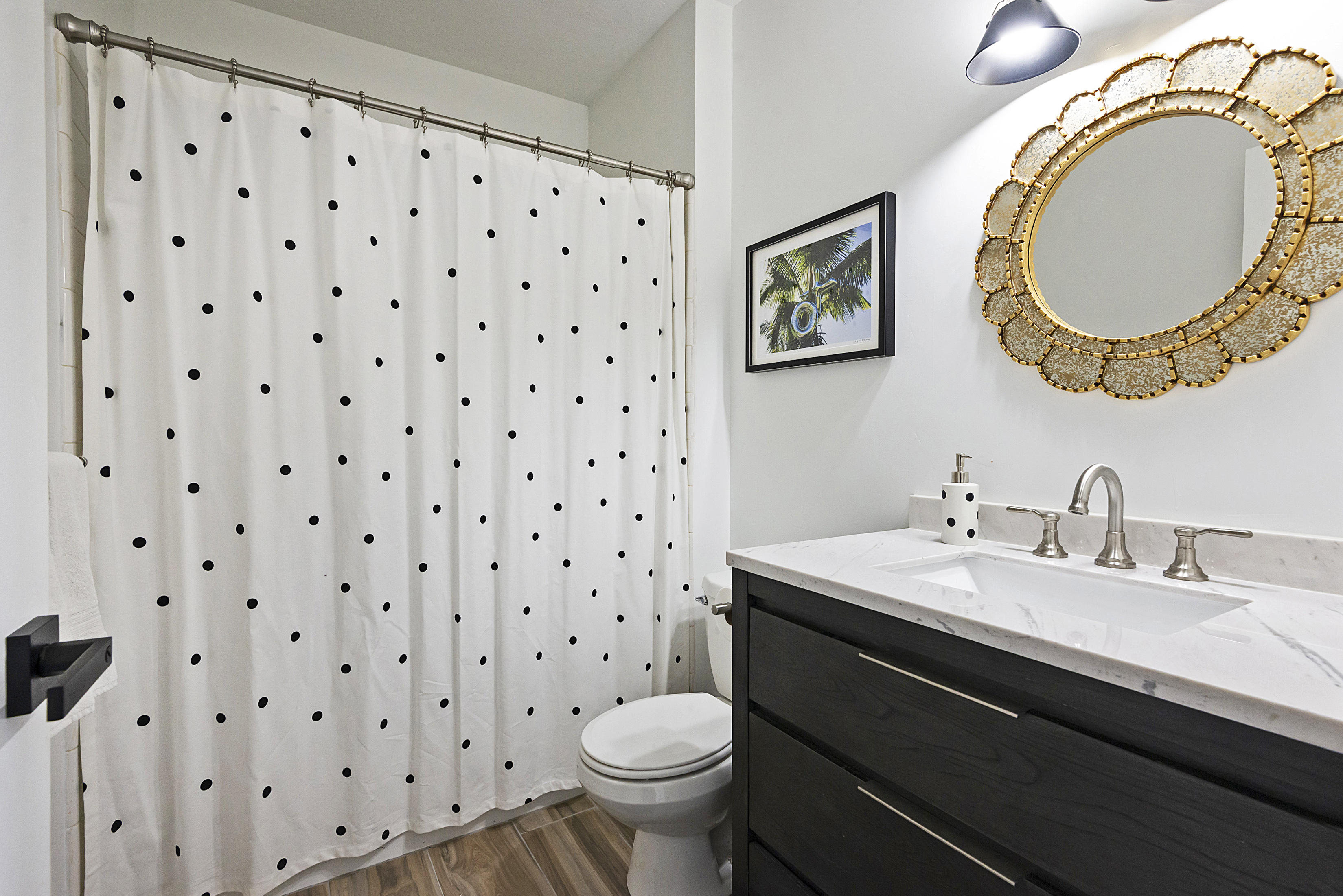 Hummingbird Homes completely remodeled this beautiful Silver Springs home, opening up the main floor plan and basement floor plan, and reworking the master bath. Our palette inspiration for this project was: Black/White/Wood, and we added touches of color in the furniture, rugs and accessories. We created a “great room” delivering an open concept kitchen/dining/living room, with an updated fireplace surround featuring an eye catching high-end encaustic tile and repurposed railroad tie mantel. The new kitchen features a GIANT island, a cooks dream, with a gorgeous quartz counter top, high-end black stainless steel appliances, two tone cabinets, hexagon marble backsplash, beautiful matte black and stainless steel pendant lights, and a stunning matte black industrial faucet. All new finishes, trim, fixtures, flooring and paint throughout, also featuring all new matte black door hardware throughout the home.